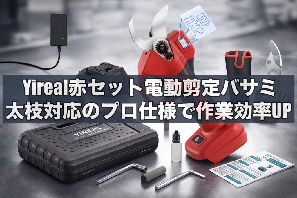 Yireal赤セット電動剪定バサミ|太枝対応のプロ仕様で作業効率UP